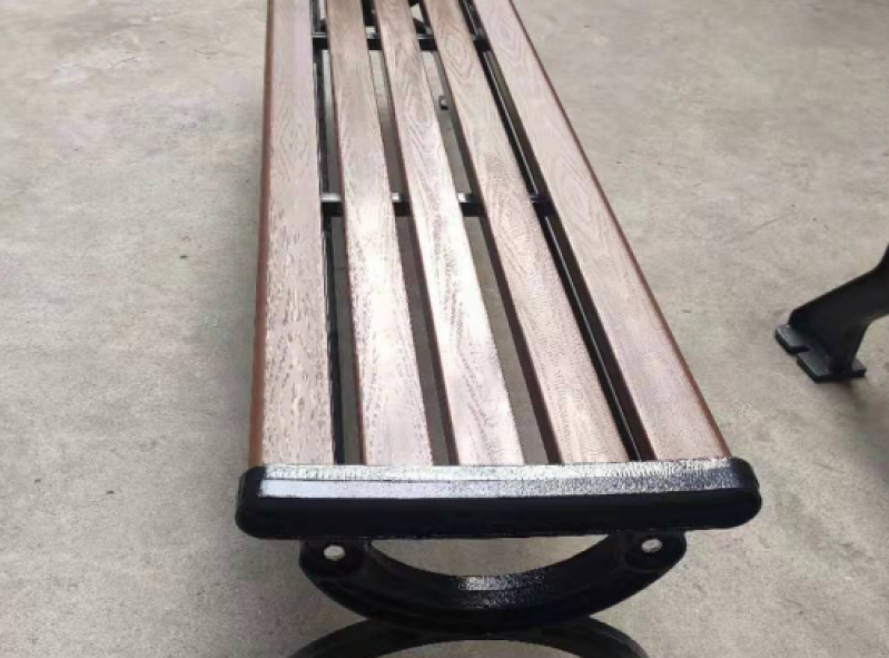 הספסל משולב יציקת ברזל ורצועות דמוי עץ